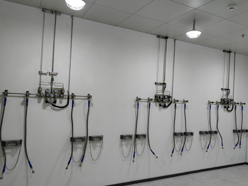 8.氣瓶間內的混合氣體設備與負荷控制器當中采用了SS316L進行工作壓力電塑料塑料軟水管銜接途徑無融于。進行工作壓力電塑料軟水管為柔性板塑料軟水管,以要確保銜接途徑的有利性。并自導隔離鋼纜,防治極端天氣條件下,設備閥破損等物理現象引致的進行工作壓力電“抽鞭”責任事故。負荷控制器與管網的銜接途徑途徑為雙環卡套。