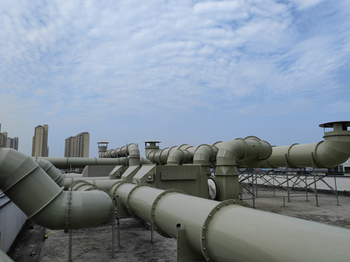 實踐室尾氣 → 特異性炭濾過器 → 引高壓離心風機 → 排放口